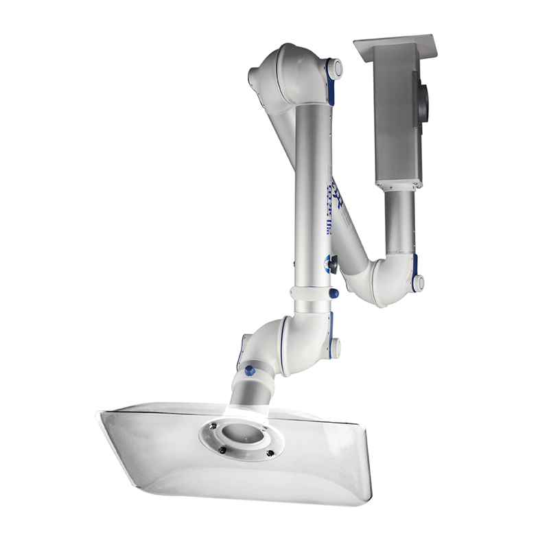 *活動(dòng)范圍:可以使折疊臂在1.5米半徑內(nèi)360°旋轉(zhuǎn)懸停,末端關(guān)節(jié)上下端均配備一個(gè)軸向360°旋轉(zhuǎn)功能,做到無(wú)死角吸風(fēng);